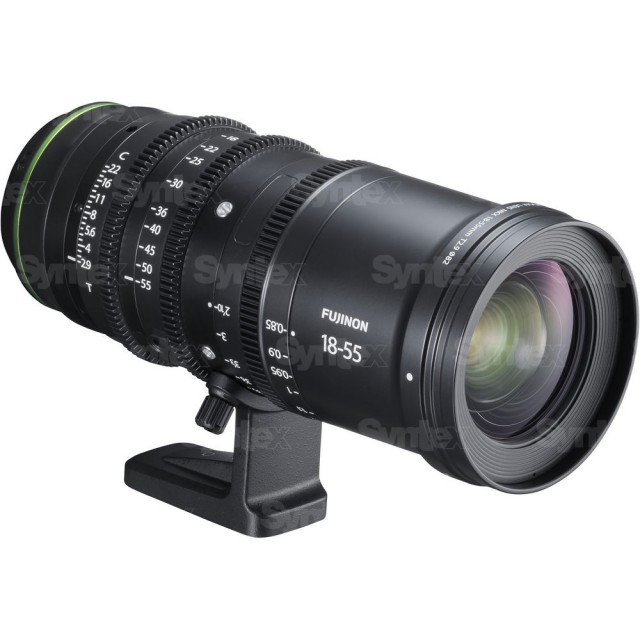 Das Fujinon MKX 18-55mm T2.9 X-Mount Cine ist ein leichtes Zoomobjektiv im Cine-Stil für X-Mount-Kameras mit Super 35mm-Sensor. Die elektrischen Kontakte innerhalb des Objektivanschlusses ermöglichen die Kommunikation mit Kameras der X-Serie. Das Objektiv verfügt über eine mechanische Konstruktion mit drei unabhängigen Steuerringen: Fokus, Blende und Zoom. Jeder Ring verfügt über ein kinematografisches Rad mit einer MOD von 0,8 für den Anschluss an Standard-Kinoobjektivzubehör. Der Fokussierring hat einen Drehbereich von ca. 200°, was eine präzise Fokussierung ermöglicht, und die Blende ist klickfrei, so dass eine weiche Blende gezogen werden kann. Das Objektiv verfügt außerdem über einen Makromodus für präzise Fokussierungsmöglichkeiten.