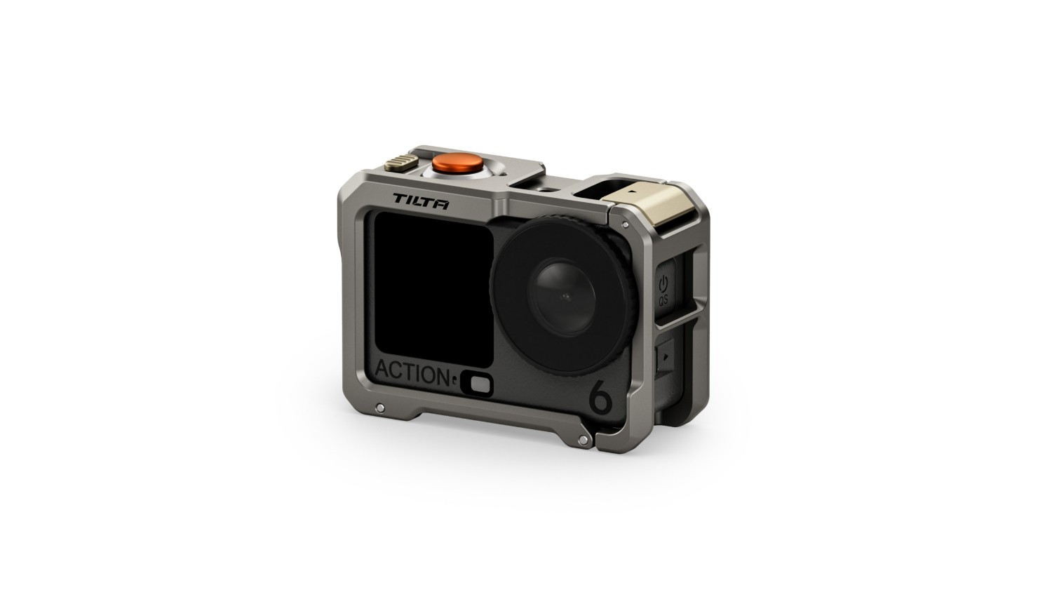 Der Tilta Full Camera Cage ist eine präzise konstruierte Schutzhülle für die DJI Osmo Action 6, die sichere Befestigungspunkte, verlängerte Tasten und Kompatibilität mit Magnetfiltern für mehr Flexibilität beim Filmen bietet.