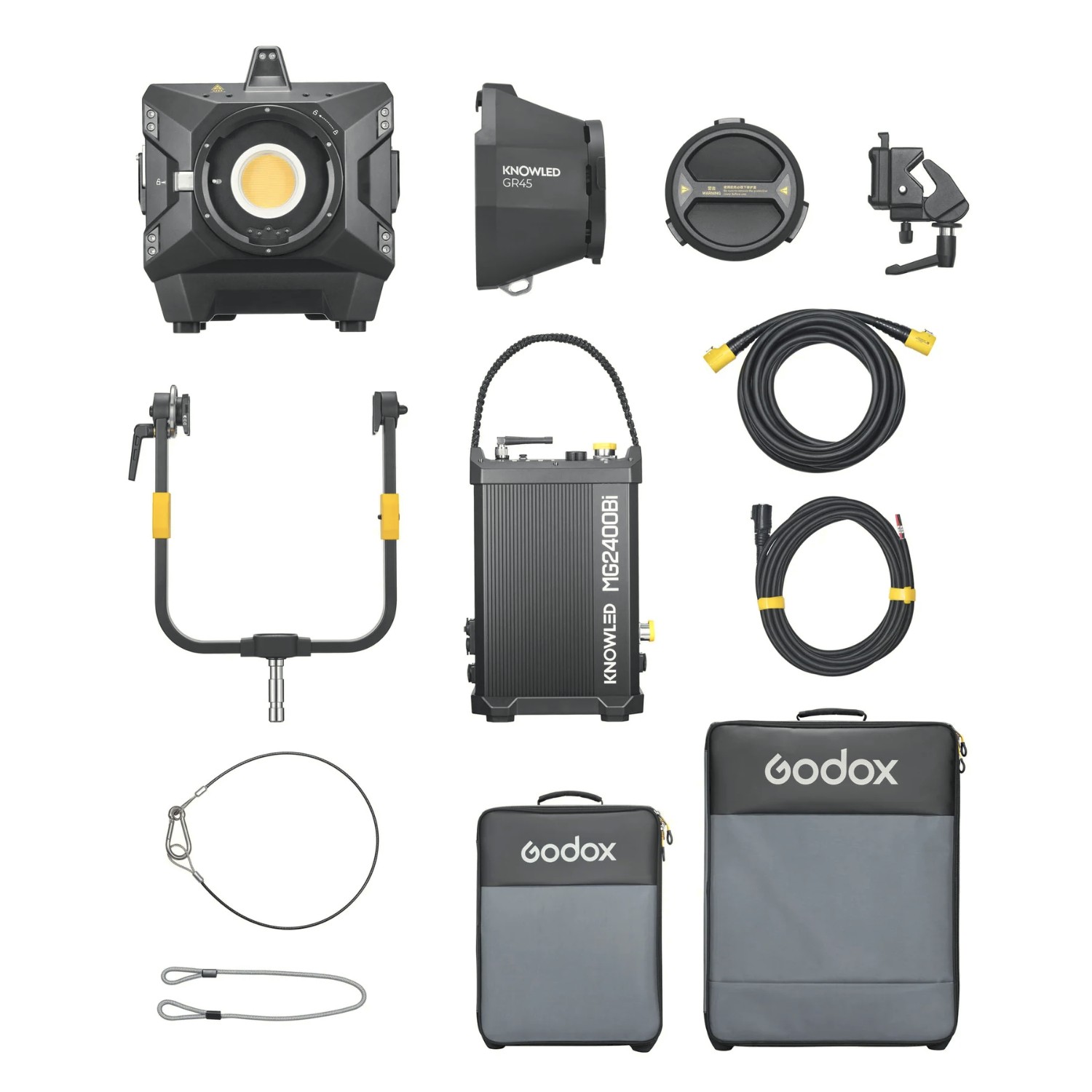Das Godox Knowled MG2400Bi SE K1 SB ist ein extrem leistungsstarkes 2600-W-Zweifarben-LED-Studioblitzgerät mit einer weichen Tasche und einem 45°-Reflektor, das für professionelle Film-, Fernseh- und Theaterproduktionen entwickelt wurde. Mit einer Wetterbeständigkeit gemäß IP54, einem CRI/TLCI von 96+, einer präzisen Dimmung von 0,1 %, 11 integrierten FX-Modi und einer umfassenden Steuerung über DMX, CRMX und die Godox Light App bietet es eine Beleuchtungsleistung in Kinoqualität für High-End-Produktionen.