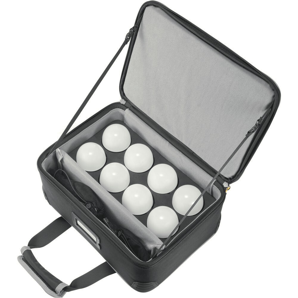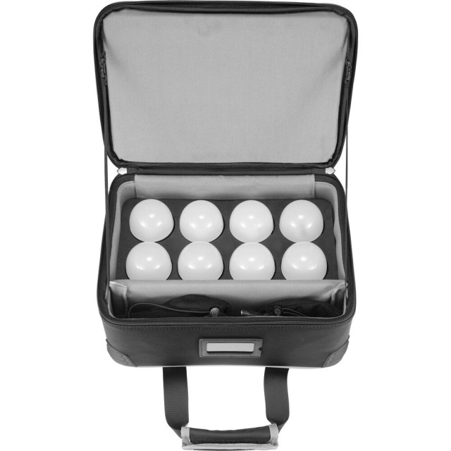 Die mitgelieferte Lade- und Tragetasche sorgt für Ordnung und Schutz aller acht Lampen, während acht runde Cup-Bouncer-Diffusoren dazu beitragen, die Lichtleistung zu mildern und zu formen. Mit einem E26/E27-Sockel passen die C10R-Lampen in Standardfassungen und sind somit ein vielseitiges Beleuchtungswerkzeug für praktische Zwecke, Requisiten und kreative Beleuchtungsdesigns.