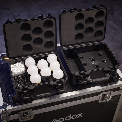 Godox Knowled Achtfach-Ladeetui-Set C7R-K8 für C7R-Leuchten. Bewahren Sie bis zu acht C7R-LED-Videoleuchten effizient in einem robusten Etui auf und laden Sie sie auf. Perfekt für mobile Filmemacher und Studio-Profis, die organisierte und einsatzbereite Beleuchtungslösungen benötigen. Optimieren Sie Ihren Workflow mit diesem praktischen Set.