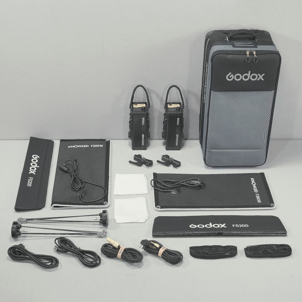 Das F200Bi K2-Kit wird komplett mit Softboxen und abnehmbaren Gittern für eine raffinierte Lichtformung, X-Halterungen und Adapterhaltern für eine sichere Befestigung, Controller-/Netzteilen, Anschluss- und Stromkabeln sowie einer gepolsterten Tragetasche für einen reibungslosen Transport geliefert. Mit seiner hochwertigen Verarbeitung, präzisen Leistung und unübertroffenen Anpassungsfähigkeit ist das Godox KNOWLED F200Bi K2 Kit ein erstklassiges Beleuchtungssystem für Profis, die eine robuste, flexible und leistungsstarke LED-Lösung benötigen.