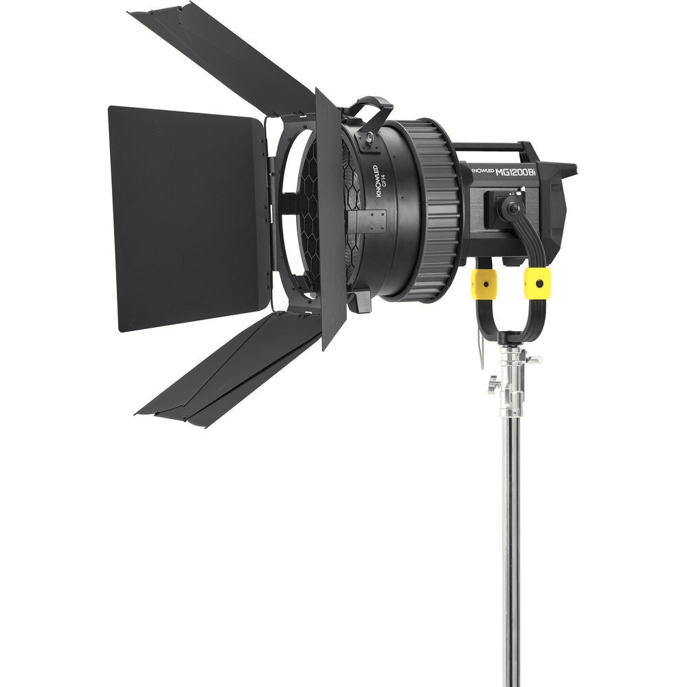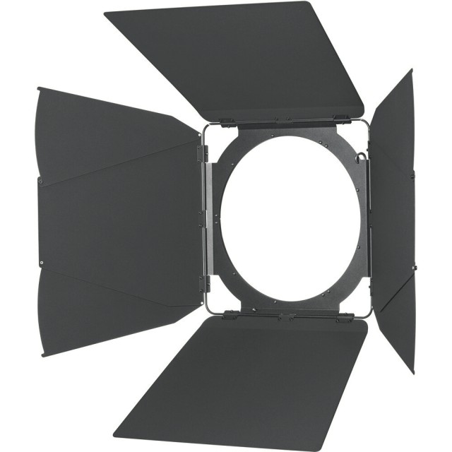 Die Godox Knowled GF14B 4-Wege-Barndoors für GF14-Fresnel-Linsen bieten präzise Strahlformung, Richtungssteuerung und Vermeidung von Streulicht für Godox MG1200Bi Bi-Color LED-Monolights.