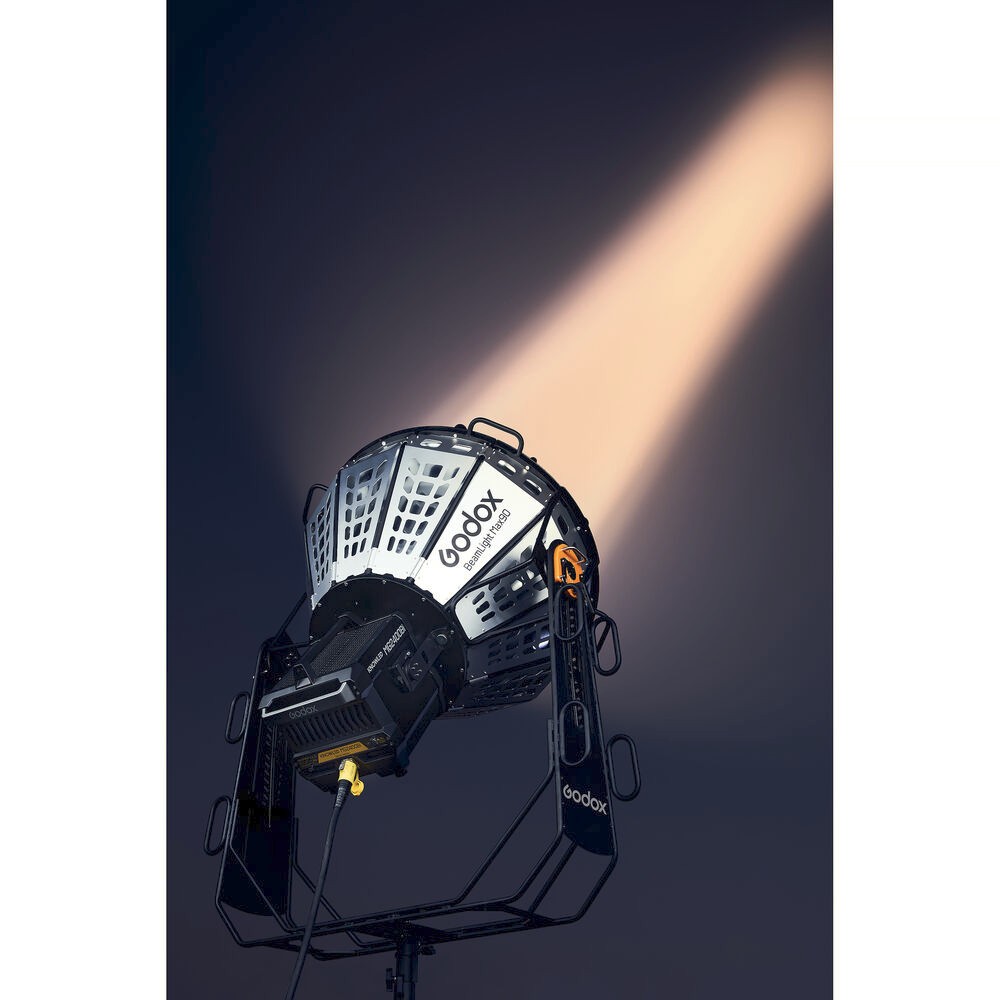 Der Godox Knowled BeamLight Max90 ist ein professioneller Parallelstrahlreflektor in Kinoqualität, der für die Fernbeleuchtung mit LED-Leuchten der Godox MG-Serie entwickelt wurde, darunter MG2400Bi, MG1200Bi, MG1200R und MG2400R. Sein präzises optisches Design erzeugt einen nahezu parallelen Strahl von 5°, der einen minimalen Lichtabfall und eine außergewöhnliche Reichweite bietet – perfekt für die Beleuchtung großer Sets, Gebäudefassaden oder die Nachahmung von natürlichem Sonnenlicht.