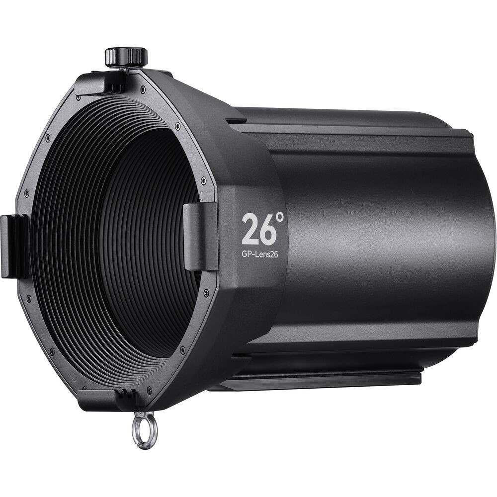 Das Godox Knowled GP26K 26°-Objektiv ist ein Präzisionsprojektionsobjektiv für das Godox G-Mount-System, das einen scharfen, gleichmäßigen 26°-Strahl mit verbesserter Helligkeit und minimalen Aberrationen erzeugt. Dieses Objektiv eignet sich ideal für Gobo-Projektionen und fokussierte Beleuchtung und steigert in Kombination mit dem MG1200Bi LED-Monolight die Leistung um bis zu 8-fache Helligkeit, während sein Schnellmontagegehäuse eine schnelle Anbringung und Entfernung ermöglicht.