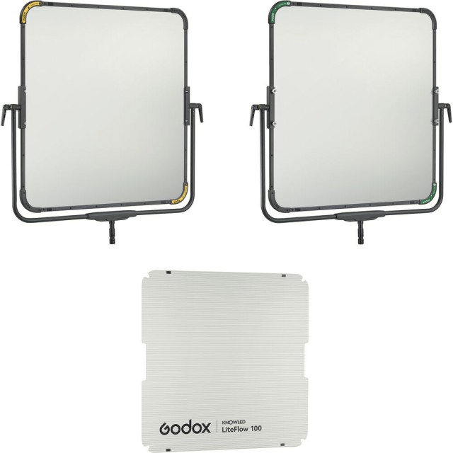 Der Godox Knowled LiteFlow 100 Double-Sided Reflector ist eine professionelle Beleuchtungslösung für Filmemacher, Kameraleute und Beleuchtungsprofis, die ultimative Flexibilität bei der indirekten Lichtsteuerung suchen. Dieses System umfasst zwei 100 x 100 cm große, spiegelähnliche, aluminiumbeschichtete Paneele, die auf robusten Bügelrahmen montiert sind und mehrere Diffusionsoptionen bieten: hartes, mittleres, weiches und weiches Streifenlicht. Jede Seite liefert einen verlängerten Lichtweg mit natürlichem Lichtabfall, sodass Sie sich an unterschiedliche Beleuchtungsanforderungen anpassen können, von Kunstlichtquellen bis hin zu Tageslicht oder weichem Fülllicht.