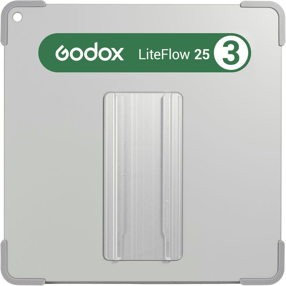Das Godox Knowled LiteFlow 25 Reflektor-Kit ist eine professionelle Beleuchtungslösung für Filmaufnahmen mit vier 10 × 10" großem, aluminiumbeschichtetem Reflektoren mit harter, mittlerer, weicher und weicher Streifenstreuung, die eine präzise indirekte Lichtsteuerung in einem kompakten, tragbaren Kit mit einer weichen Tragetasche bieten.