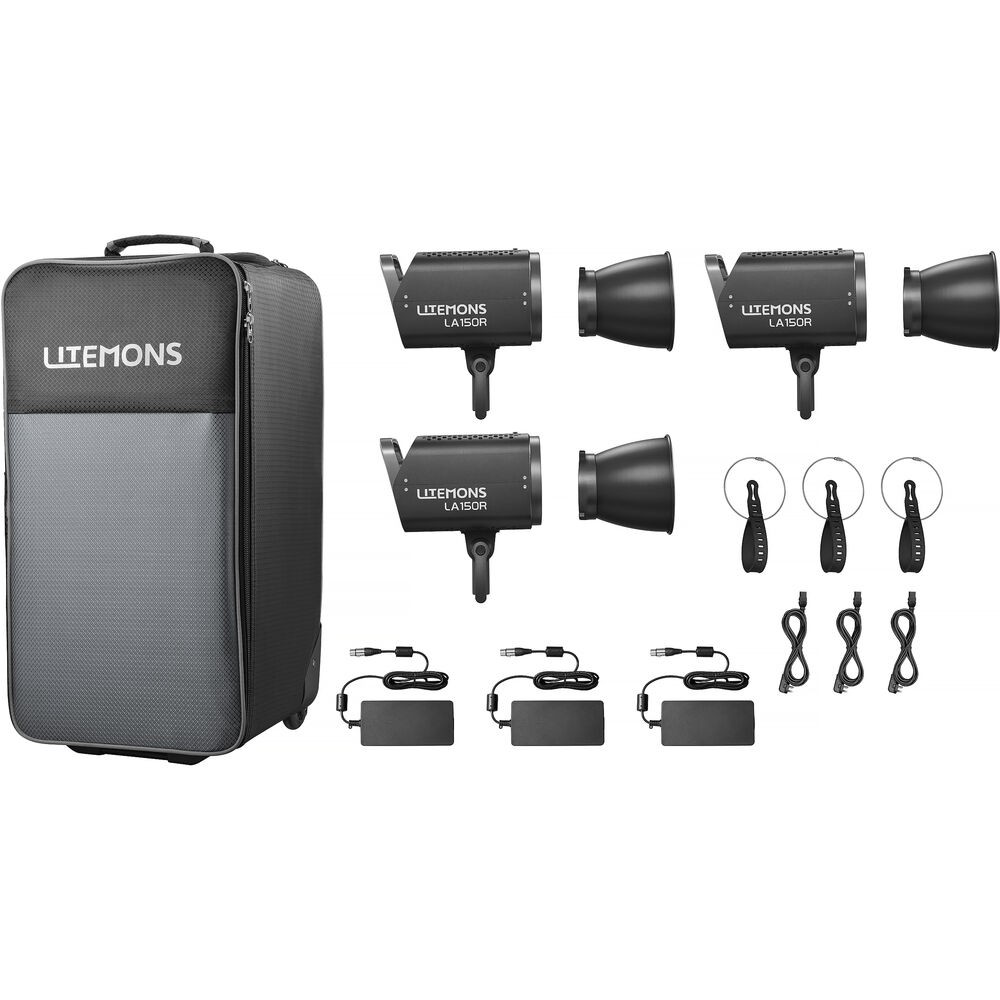 Der LA150R unterstützt sowohl Netzstrom als auch optionale V-Mount-Akkus und eignet sich somit für den Einsatz im Studio und vor Ort. Dank der Kompatibilität mit Bowens S-Mount kann eine Vielzahl von Modifikatoren verwendet werden, und jede Leuchte verfügt über einen Reflektor für eine verbesserte Leistung. Das Kit enthält außerdem eine Tragetasche, Netzteile, Sicherheitszubehör und Befestigungsoptionen und ist somit eine komplette und tragbare RGB-Beleuchtungslösung.