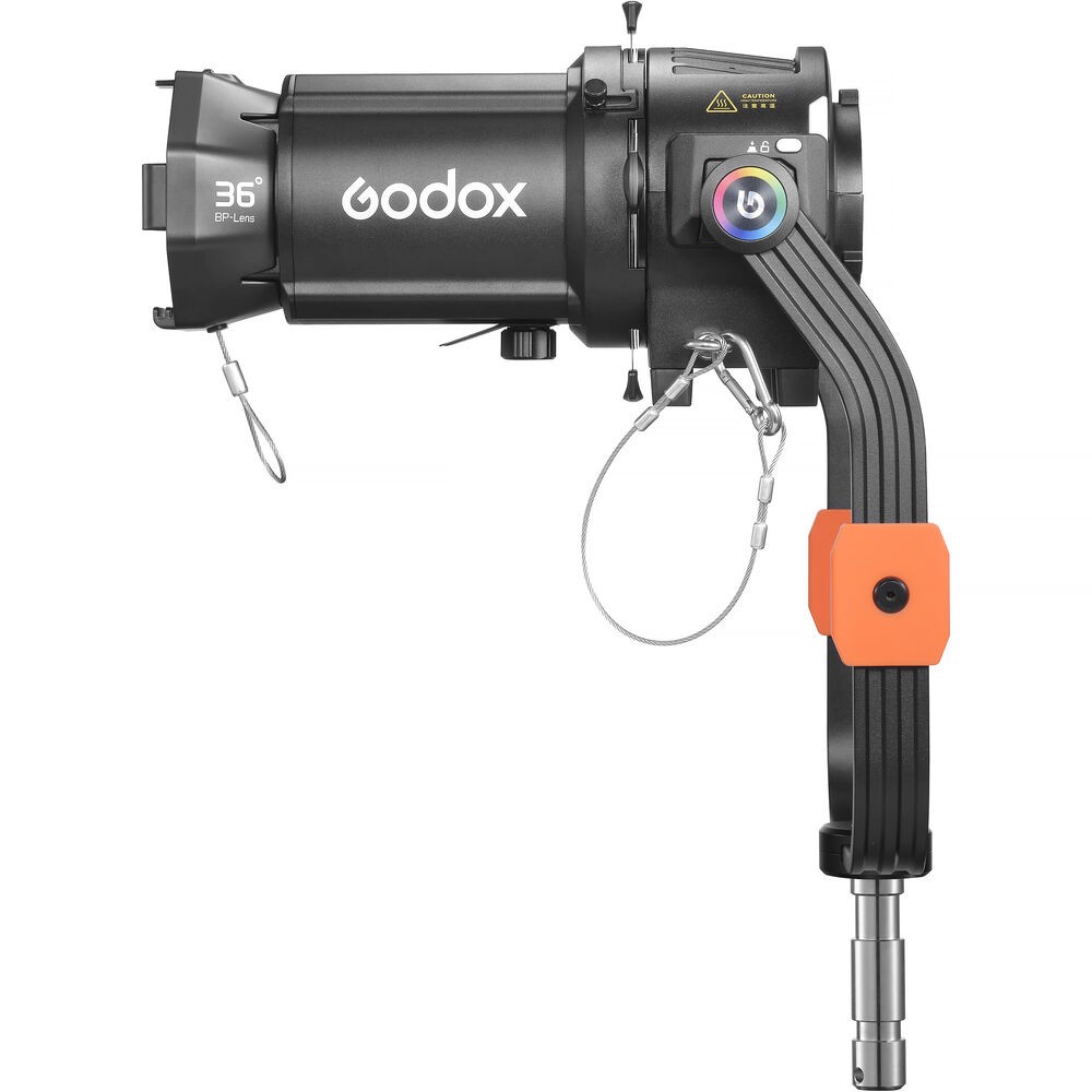 Erweitern Sie Ihre Godox Knowled-Beleuchtungsanlage mit dem Knowled-Projektionsaufsatz mit flacher Bowen-Halterung. Dieses Zubehör wurde für die Leuchten M600R, M600BI PRO und LA600R/LA600 entwickelt und umfasst eine optische Projektionslinse mit 36°-Winkel, ein Gobo-Set mit Halterung und einen Farbeffektclip, mit denen sich kreative Lichteffekte präzise und einfach erzielen lassen.