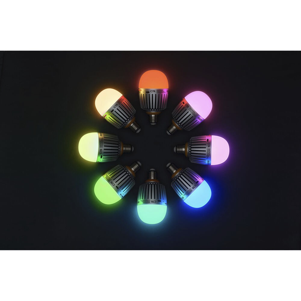 Die Godox C7R RGBWW Creative Bulb (Batterieversion) ist eine vielseitige, vollständig abstimmbare LED-Glühbirne mit integriertem Akku und USB-C-Stromversorgungsoptionen. Mit einer hohen Farbtreue von CRI 96 und TLCI 98 bietet sie RGB-, HSI- und 2000–10.000K-CCT-Modi, stufenloses Dimmen und Bluetooth-Steuerung über die Godox Light App – perfekt für dynamische Beleuchtung bei jedem Set oder kreativen Projekt.