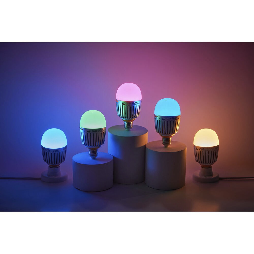 Verwirklichen Sie Ihre kreativen Visionen mit der Godox C7R RGBWW Creative Bulb (Batterieversion). Diese kompakte und dennoch leistungsstarke LED-Lampe bietet flexible Stromversorgungsoptionen, darunter einen integrierten Akku für den mobilen Einsatz oder einen USB-C-Eingang für den Dauerbetrieb. Mit einer Lichtleistung von 101 Lux bei 3,3' (5500 K) liefert die C7R eine flimmerfreie, gleichmäßige Ausleuchtung über einen breiten Farbbereich. Vollständig einstellbare RGB-, HSI-, Gel- und Farbauswahlmodi sowie ein CCT-Bereich von 2000–10.000 K ermöglichen eine präzise Steuerung von Farbton, Sättigung und Intensität. Eine hohe Farbtreue wird durch CRI 96 und TLCI 98 gewährleistet, während die stufenlose Dimmung von 0–100 % sich an jede Szene anpasst. Die Glühbirne passt in Standard-E26/E27-Fassungen und bietet zusätzliche Steuerungsmöglichkeiten über die Godox Light App, die Gruppierung, Fern-Dimmung und vollständige Farbanpassung für nahtlose Beleuchtungskonfigurationen ermöglicht. Kompakt, tragbar und benutzerfreundlich – die Godox C7R ist ein unverzichtbares Werkzeug für Fotografen, Videografen und Content-Ersteller.
