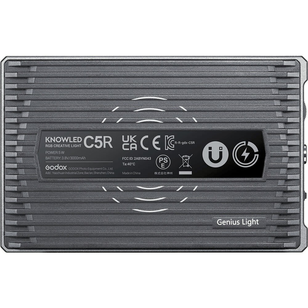 Die Godox Knowled RGBWW LED-Leuchte C5R ist eine kompakte, vielseitige Beleuchtungslösung für Fotografen und Videografen, die kreative Kontrolle suchen. Mit einstellbaren Farbtemperaturen von 2500 bis 8500 K, einer Helligkeitsdimmung von 0 bis 100 % und 39 integrierten Lichteffekten liefert diese leichte LED-Leuchte professionelle Beleuchtung in tragbarer Form. Steuern Sie es direkt über das integrierte LCD-Panel oder drahtlos über die Godox Light App und befestigen Sie es flexibel mit der magnetischen Rückseite, der Blitzschuhbasis oder dem 1/4"-20-Gewinde. Der integrierte 3000-mAh-Akku bietet eine Laufzeit von bis zu zwei Stunden und ist somit perfekt für Aufnahmen unterwegs geeignet.