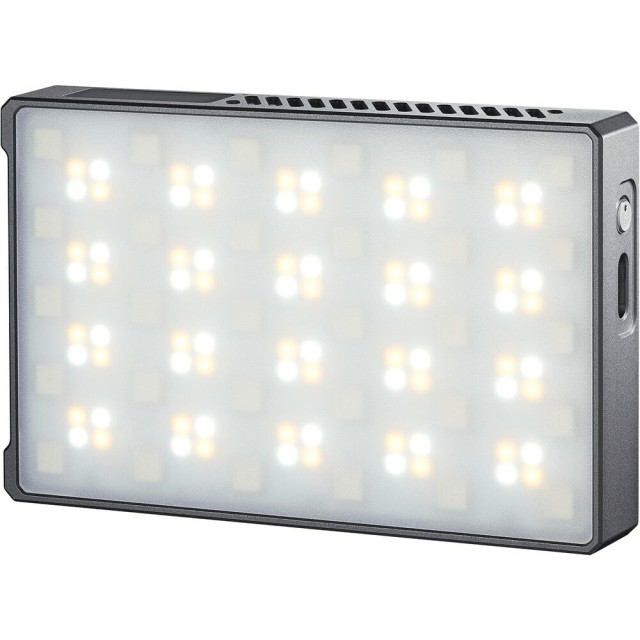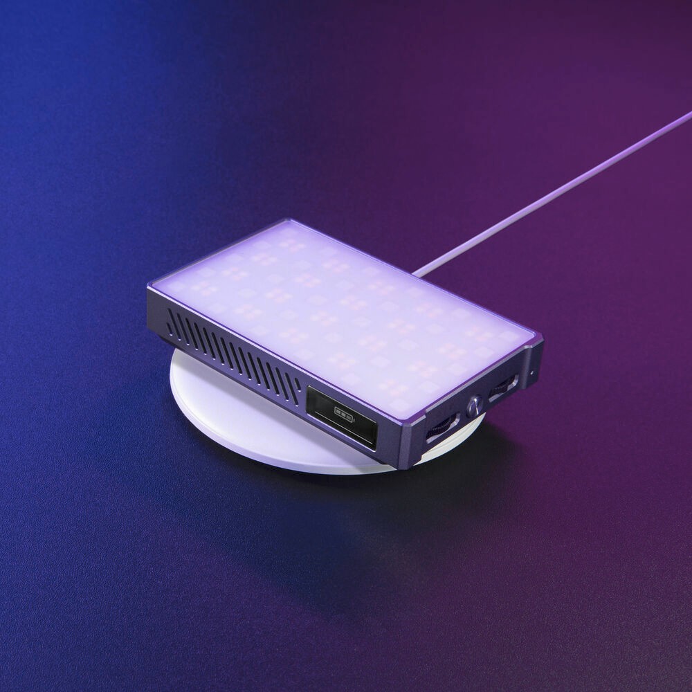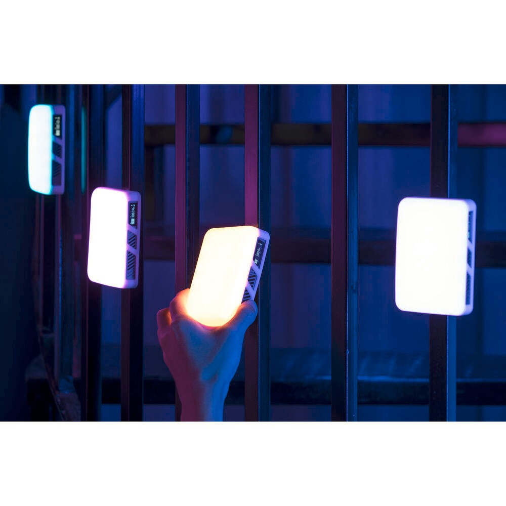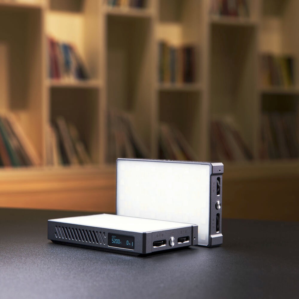 Dank einer magnetischen Rückseite, einer Kaltschuh-Befestigungsbasis und einem 1/4"-20-Gewinde zur Befestigung an Stativen oder Gelenkarmen ist die Einrichtung flexibel. Mit einem Gewicht von nur 169 g und Abmessungen von 10,6 x 6,8 x 1,8 cm ist es kompakt und leicht und eignet sich ideal für den Handgebrauch oder für die Montage an einem Rig.
