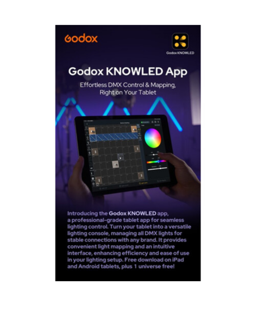 | Light control | On‑device dials + Bluetooth (Godox Light app) |