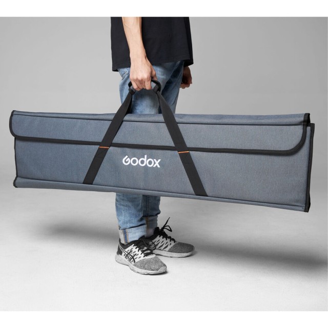 Alle Komponenten passen ordentlich in die mitgelieferte Tragetasche, die eine übersichtliche Aufbewahrung und schnellen Zugriff für einen schnellen Auf- und Abbau ermöglicht. Das Godox SF6090 Scrim Flag Kit ist kompakt, vielseitig und nach professionellen Standards gefertigt und ein unverzichtbares Zubehör für jedes Beleuchtungs-Toolkit.