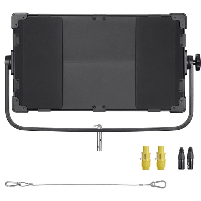 Das P200Bi verfügt über ein robustes Metallgehäuse und ein passives Kühlungsdesign und arbeitet geräuschlos – ideal für geräuschempfindliche Aufnahmen wie Interviews oder Live-Übertragungen. Es verfügt über vierflügelige Lichtklappen zur Richtungssteuerung und unterstützt die Verkettung mehrerer Panels (bis zu fünf) für größere Setups. Das Panel wird über eine Standard-Wechselstromversorgung von 100–240 VAC betrieben und verfügt über eine U-förmige Halterung, die Flexibilität bei der Montage über Kopf, auf einem Lichtstativ oder an einer Deckenbefestigung bietet.
