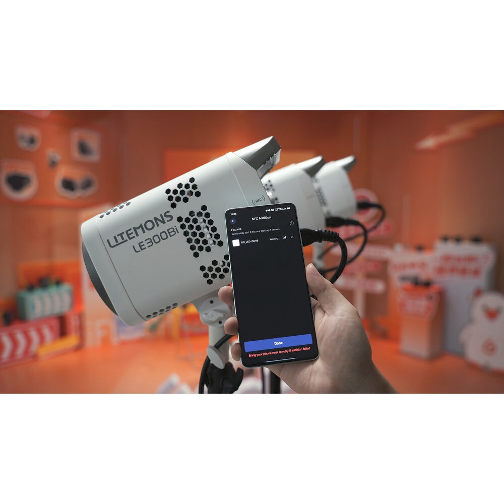 Der LE300Bi ist mit fortschrittlichen Steuerungsoptionen ausgestattet, darunter integrierte Tasten und Bildschirm, kabelgebundenes DMX, Bluetooth-App-Steuerung, NFC-One-Tap-Kopplung und die neue Bluetooth-Reset-Taste von Godox für eine optimierte Verwaltung mehrerer Leuchten. Für noch mehr Flexibilität ist über den TimoLink RX-Adapter eine optionale CRMX-Integration verfügbar. Der intuitive FX-Modus bietet 11 kreative Lichteffekte wie Blitz, Sturm, Kerze, TV, Feuerwerk und mehr.