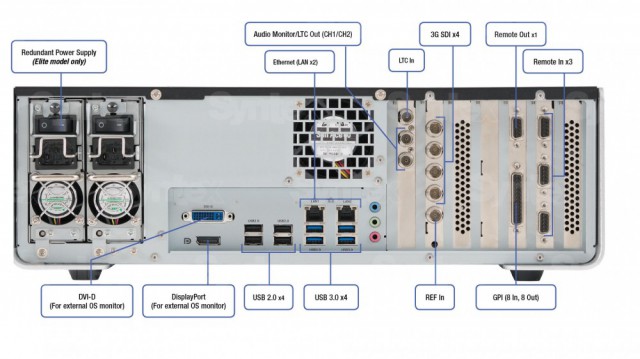 Die Elite-Variante bietet außerdem eine redundante Stromversorgung, SD-, SD UHS-II-, CF- und SxS-Kartenleser, einen zusätzlichen Steckplatz für eine 2,5"-SSD und die Möglichkeit, das aktuell aufgezeichnete Video in EDIUS zu bearbeiten.