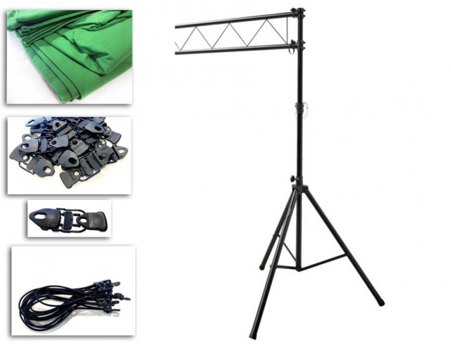 Grüner Hintergrund 3x3 m, einschließlich Stative und Verbindungsstruktur für hängenden Stoff. Komplettlösung für das Keying.