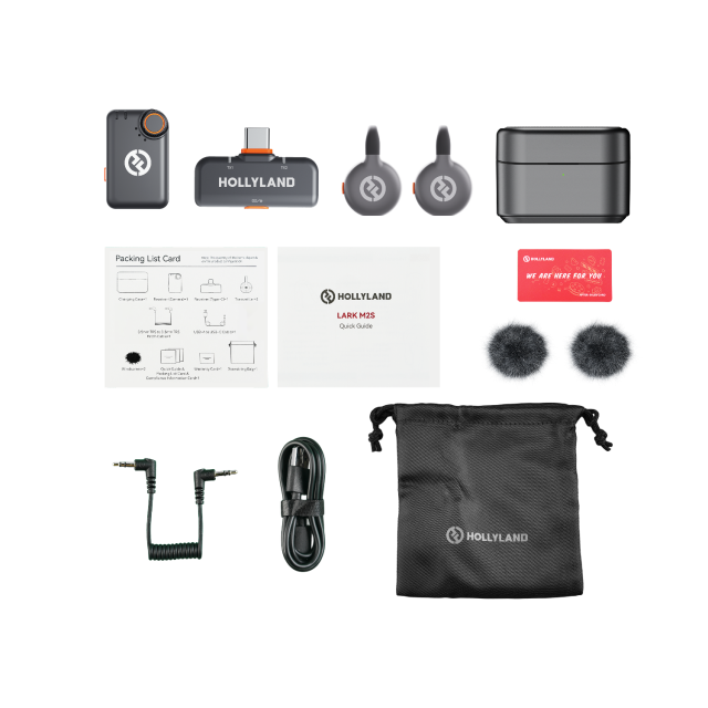 Hollyland LARK M2S Wireless Lavalier Microphone Mini Combo (with Camera RX + USB-C RX, Space Gray)