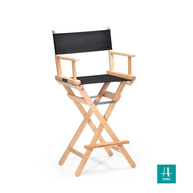 Der hohe Regiestuhl ist ein hoher, klappbarer Holzstuhl mit den Maßen 58x48x1190h cm. Er ist in den Farben Schwarz und Natur erhältlich. Das Gestell ist aus Buchenholz und die Sitzfläche mit Rückenlehne ist aus Baumwolle gefertigt. Der Stuhl kombiniert ein robustes Design mit einer leichten Konstruktion, wodurch er sich für eine Vielzahl von Umgebungen eignet und gleichzeitig praktisch und elegant aussieht.