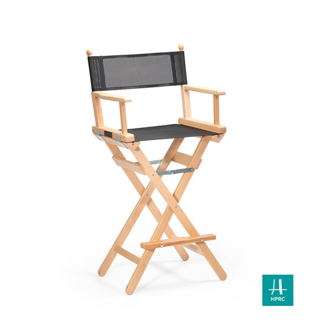 Der hohe Regiestuhl ist ein hoher, klappbarer Holzstuhl mit den Maßen 58x48x1190h cm. Er ist in den Farben Schwarz und Natur erhältlich. Das Gestell ist aus Buchenholz und die Sitzfläche mit Rückenlehne ist aus Baumwolle gefertigt. Der Stuhl kombiniert ein robustes Design mit einer leichten Konstruktion, wodurch er sich für eine Vielzahl von Umgebungen eignet und gleichzeitig praktisch und elegant aussieht.