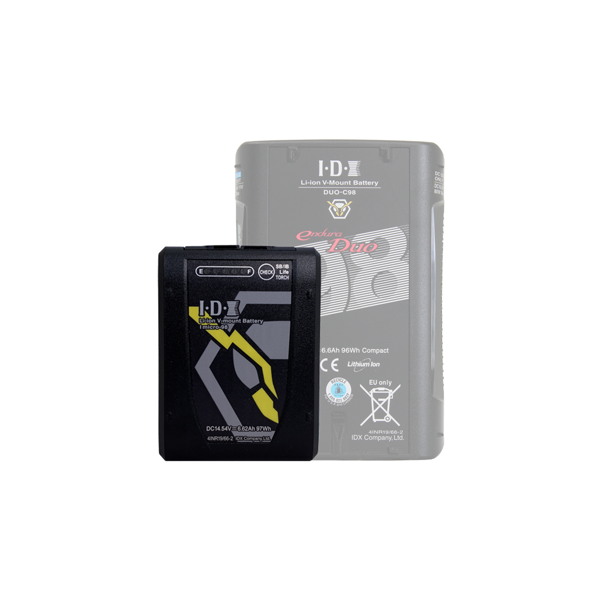 Der IDX Imicro-98P ist ein kompakter V-Mount-Akku mit einer großen Kapazität. Er hat einen D-Tap- und einen USB-C-Ausgang.