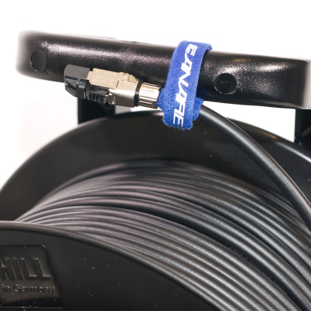 Flexibles CAT6A STP Kabel 23AWG mit Außendurchmesser 8,6 mm mit Telegartner RJ45 Klemmen, gewickelt auf Schill GT 310.RM Kabeltrommel. Ethernet-Kabel werden nicht nur für Computernetzwerke verwendet, sondern neuerdings auch für digitale Audionetzwerke, Netzwerkkameras, HDBaseT-Übertragungen. Die Gesamtlänge des Kabels ist einschließlich der Stecker angegeben.