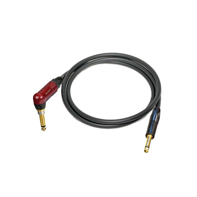 Das Canare GS-6 ist ein asymmetrisches 5,8 mm High-End-Instrumentenkabel mit einem Neutrik NP2X-B-Stecker an einem Ende und einem rechteckigen Neutrik NP2RX-AU-SILENT-Stecker am anderen Ende.