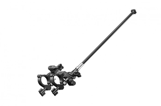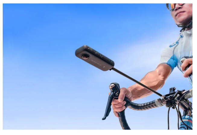 Die Insta360 INST110-23 Lenkerhalterung ist eine robuste Halterung aus Aluminiumlegierung, mit der Sie Ihre Kamera sicher am Lenker Ihres Fahrrads oder Motorrads befestigen können. Sie umfasst eine 25 cm lange Carbonfaserstange für eine größere Reichweite und ermöglicht stabile Aufnahmen bei Geschwindigkeiten von bis zu 60 km/h. Nicht für den Offroad-Einsatz geeignet.