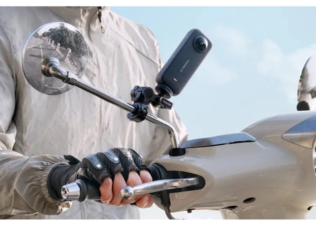 Die Insta360 Motorradspiegelhalterung (INST110-47) wurde speziell für Motorradfahrer entwickelt, die ohne komplizierte Einstellungen filmreife Aufnahmen aus der Third-Person-Perspektive machen möchten. Diese Halterung lässt sich leicht an Motorrad- oder Roller-Spiegelstielen und Lenkern mit einem Durchmesser zwischen 6 und 15 mm befestigen und bietet auch bei hohen Geschwindigkeiten einen festen, vibrationsfesten Halt. Das verstellbare Klemmsystem sorgt für eine hohe Kompatibilität und eine präzise Kamerapositionierung, wodurch sich die Halterung ideal für dynamische Fahrwinkel eignet. Die Halterung wurde für die nahtlose Verwendung mit Insta360-Actionkameras entwickelt, unterstützt eine Vielzahl von Aufnahmestilen und eignet sich perfekt für den täglichen Weg zur Arbeit, Touren oder Abenteuerfahrten. Langlebige Materialien und rutschfeste Einsätze sorgen für einen sicheren Halt Ihrer Kamera, sodass Sie sich ganz auf die Fahrt konzentrieren können, während Sie professionell aussehende Aufnahmen machen.