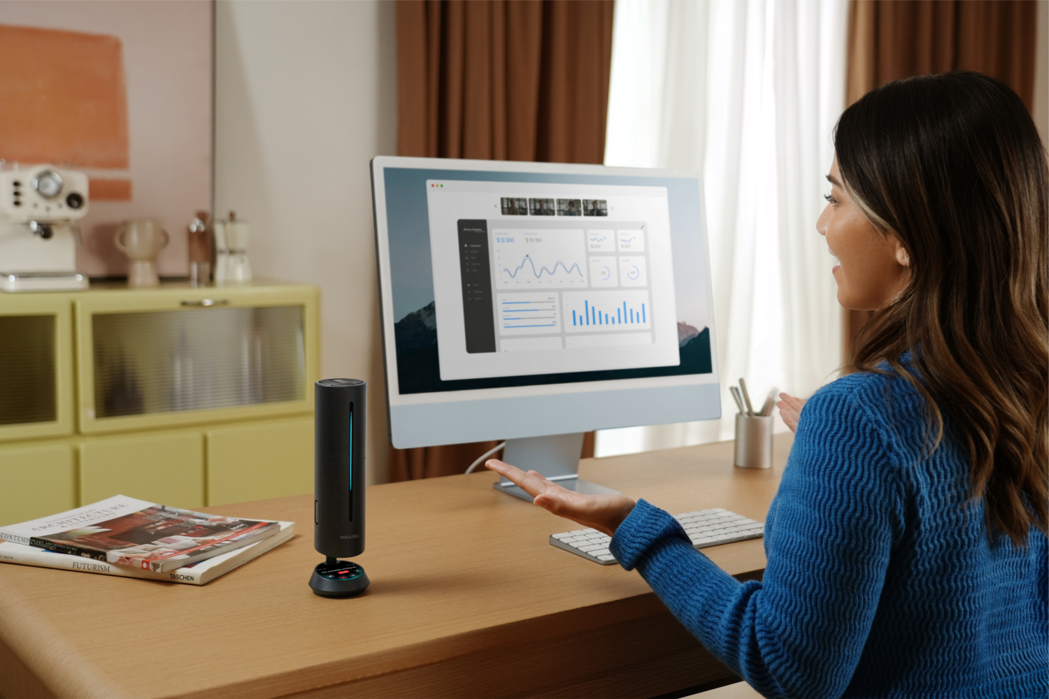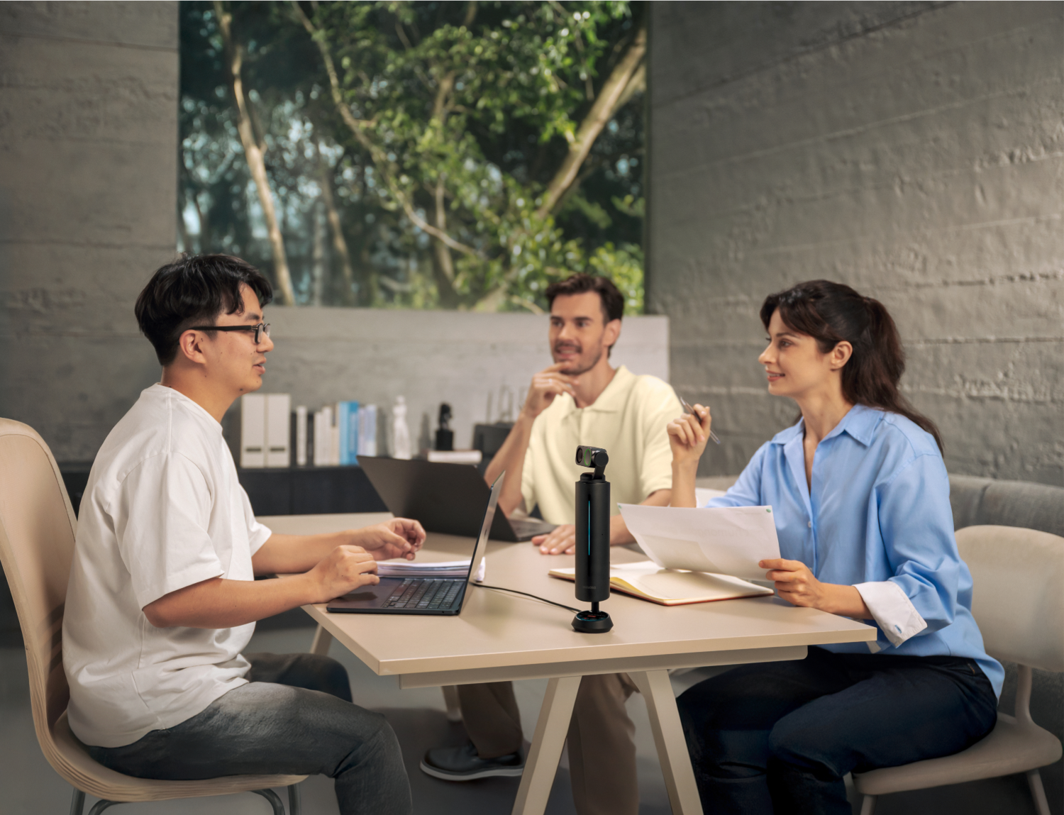 Es bietet einen integrierten 32-GB-Speicher für lokale Aufzeichnungen, automatische Transkriptionen und übersichtliche Zusammenfassungen von Besprechungen. Der Anschluss ist über USB-C, Bluetooth oder einen drahtlosen Dongle möglich – ohne dass Treiber installiert werden müssen. Ideal für Homeoffice, Besprechungen, Podcasts und Live-Übertragungen.