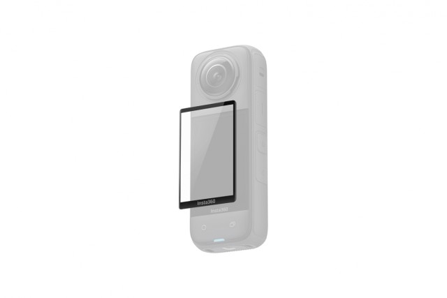 Schutzglas für das Display der Insta360 X4 Action-Kamera. Das Paket enthält ein Set mit Zubehör zum Aufkleben des Schutzglases.
