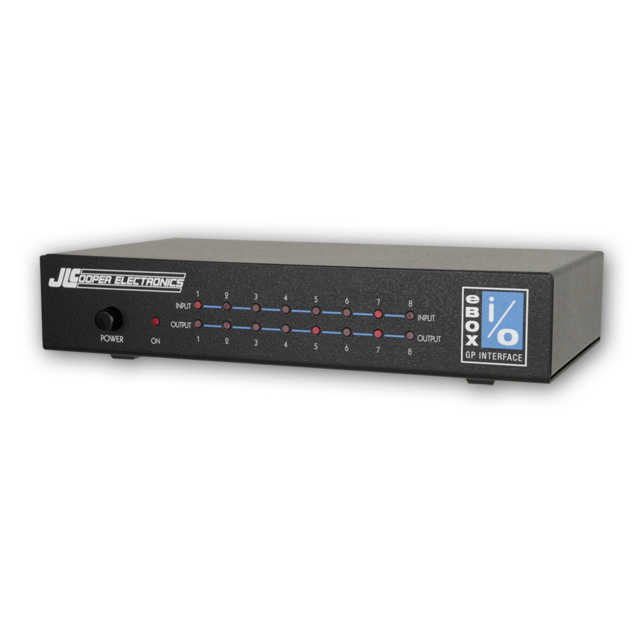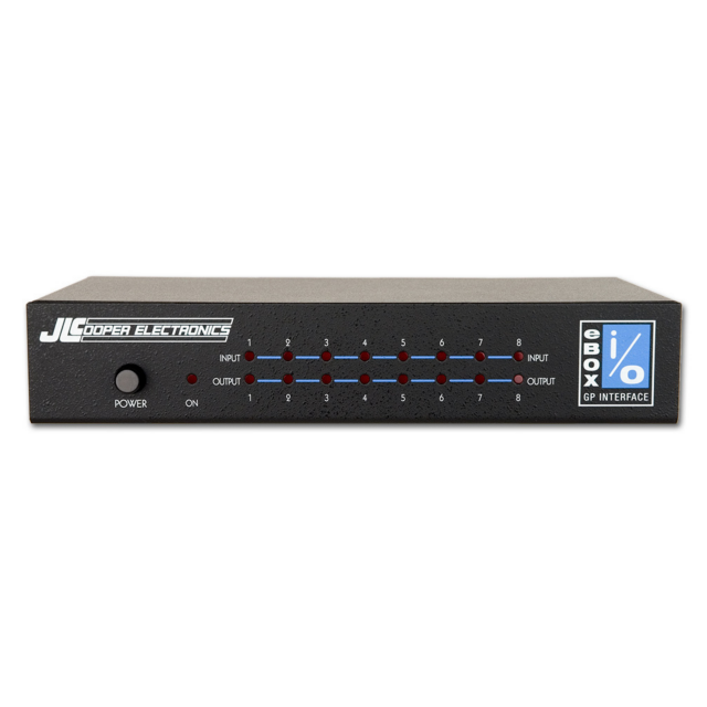 Die eBOX io von JL Cooper ist ein Ergänzungsprodukt zur Universalschnittstellenbox eBOX, das die GPI-Eingänge und -Ausgänge (General Purpose Interface) der eBOX in vollständig isolierte Ein- und Ausgänge umwandelt. Das Gerät verfügt über 8 optisch isolierte Eingänge und 8 Relais-isolierte Eingänge.