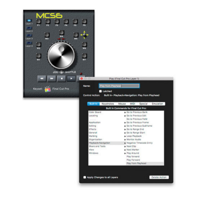 Die MCS6 USB Media Control Station von JLCooper funktioniert mit jeder Mac-Software und ermöglicht die Verwendung und Anpassung der mitgelieferten Tastensätze zur erweiterten Steuerung von Anwendungen wie Final Cut Pro X, iMovie, Premiere Pro, Pro Tools, Nuendo, Vegas Video und Media Composer. Sie verfügt über professionelle Transporttasten für Aufnahme, Wiedergabe, Stopp, Schnellvorlauf und Rücklauf. Die Media Station verfügt außerdem über eine V/Stick-Navigationssteuerung und hat 18 physische Tasten für eine Vielzahl von Bearbeitungsfunktionen. Ein präzises, optisch kodiertes Jogwheel mit einem konzentrischen Shuttle-Ring ermöglicht die framegenaue Steuerung von Audio oder Video.