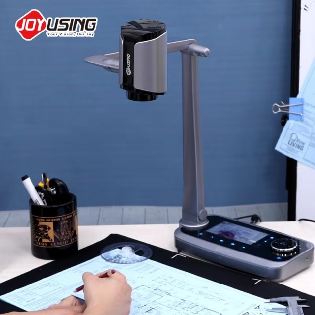 Die Joyusing V1XS-4K Dokumentenkamera mit optischem Zoom bietet eine beeindruckende Auflösung von 13,0 MP mit einem 1/2,3"-CMOS-Sensor für hochwertige Bilder. Sie unterstützt 4K Ultra HD mit 1920x1080/30fps und verfügt über einen 12-fachen optischen Zoom und einen 10-fachen digitalen Zoom, was sie ideal für detaillierte Dokumentpräsentationen macht. Die Kamera kommt ohne PC aus und bietet einen großen A3-Aufnahmebereich für die Erfassung von mehr Inhalten in Klassenzimmern oder im Fernunterricht. Der Drehknopf und die Touch-Tasten ermöglichen eine einfache Anpassung des Zooms und des Moduswechsels. Sie ist kompatibel mit Windows XP/7/8/10/11 und macOS 10/11/12/13/14.