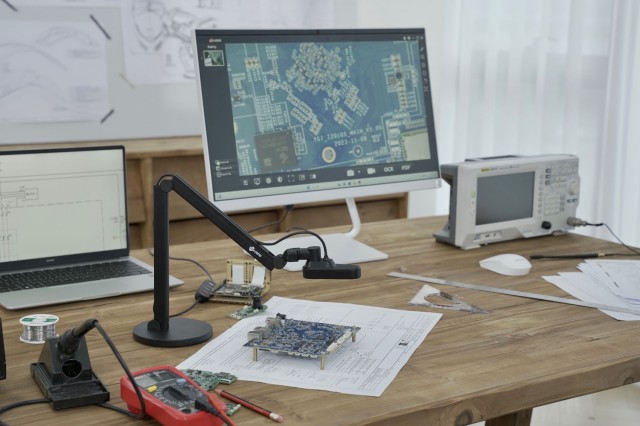 Die Joyusing V600 2-in-1 Dokumentenkamera bietet 4K-Auflösung mit einem 12MP CMOS-Sensor, 4-fachem Sensor-Zoom und 10-fachem Digital-Zoom. Sie bietet einen automatischen/manuellen Fokus, eine einstellbare LED-Beleuchtung und ein integriertes Mikrofon, wodurch sie sich ideal für Live-Streaming und Präsentationen eignet.