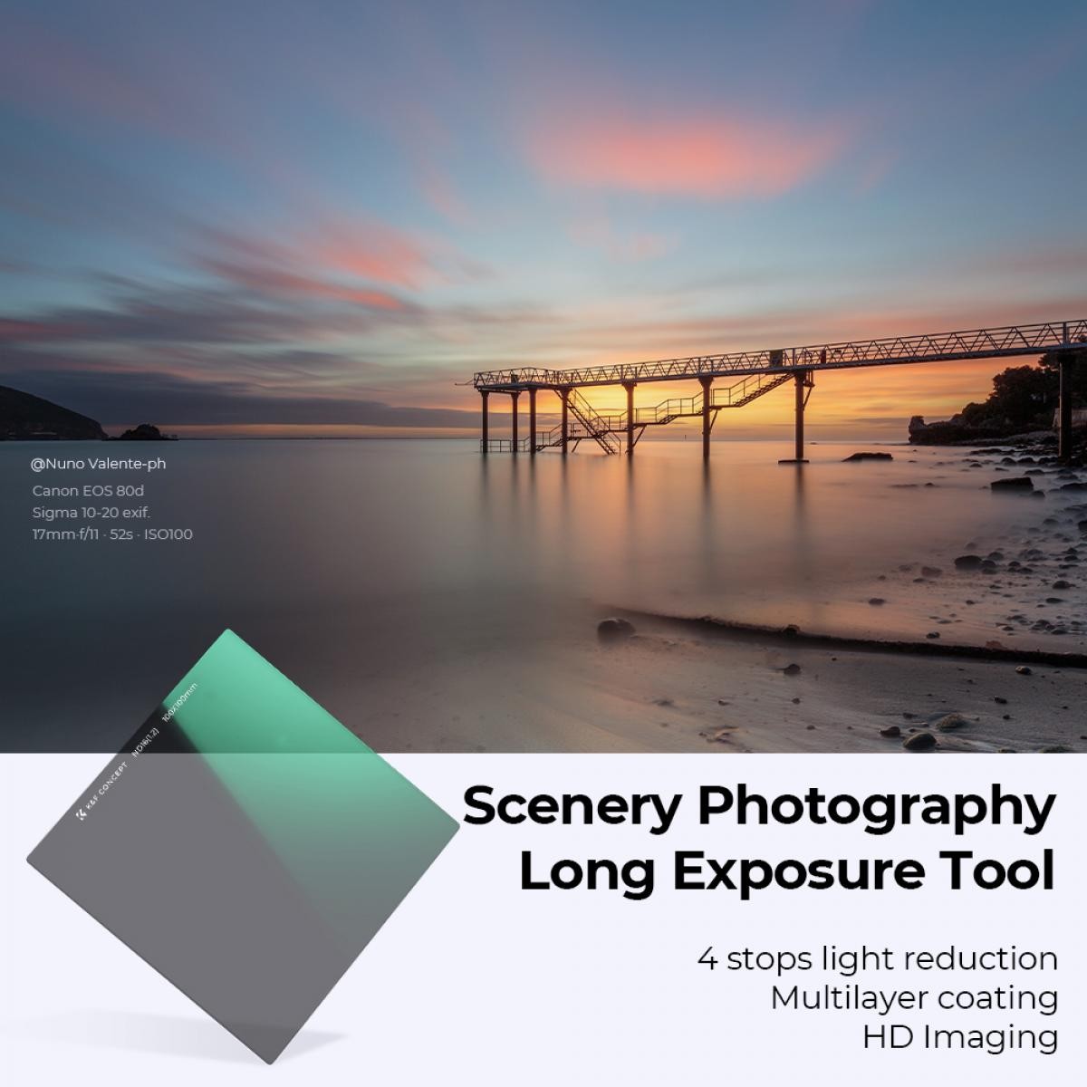 Der K&F Concept 100×100×2 mm Nano-X ND16 Quadratfilter bietet eine hochwertige Lichtreduzierung um 4 Blendenstufen für gleichmäßigere Langzeitbelichtungen und eine verbesserte Bildkontrolle in hellen Umgebungen. Er besteht aus hochwertigem AGC-Optikglas mit einer doppelseitigen 28-lagigen Nanobeschichtung, minimiert Reflexionen, ist wasser-, öl- und kratzfest und liefert scharfe, hochauflösende Ergebnisse – selbst bei Verwendung von Teleobjektiven. Dieser robuste Filter ist ideal für die Landschaftsfotografie und sorgt für saubere, ausgewogene Belichtungen mit professioneller Klarheit.