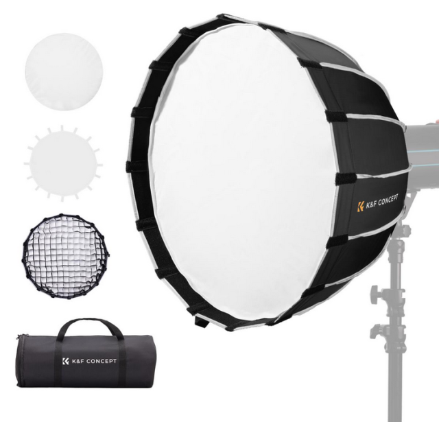 Die K&F 120CM Quick Release Soft Light Box ist ideal für Fotografen und Videofilmer, die eine weiche, gleichmäßige Beleuchtung wünschen. Diese sechseckige parabolische Softbox mit einer Länge von 120 cm verbessert verschiedene Aufnahmeszenarien mit ihren hervorragenden Lichtstreuungsfähigkeiten.