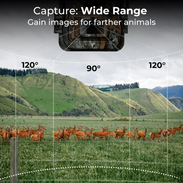 - * 【Hochempfindlicher Passiv-Infrarot-Sensor】Tracking-Kamera kann jeden spannenden Moment mit einem Erfassungsbereich von bis zu 120 Grad und einer Erfassungsdistanz von 65 Fuß/20 Metern erfassen; Ausgestattet mit 2 Low-Light-LED-Leuchten können Sie unglaubliche Videos und Fotos aufnehmen, mit 940 Schimmer, um Ihre Jagdziele nicht zu stören oder einzuschüchtern.