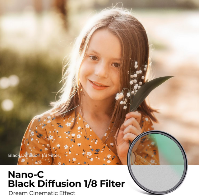 K&F Concept 46 mm C-Serie Black Mist 1/8 Filter: Ultradünnes, 3,3 mm starkes, mehrschichtiges, grün beschichtetes japanisches AGC-Glas für subtile filmische Diffusion und traumhaften Glanz in den Lichtern.