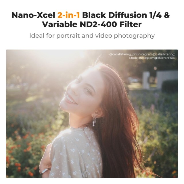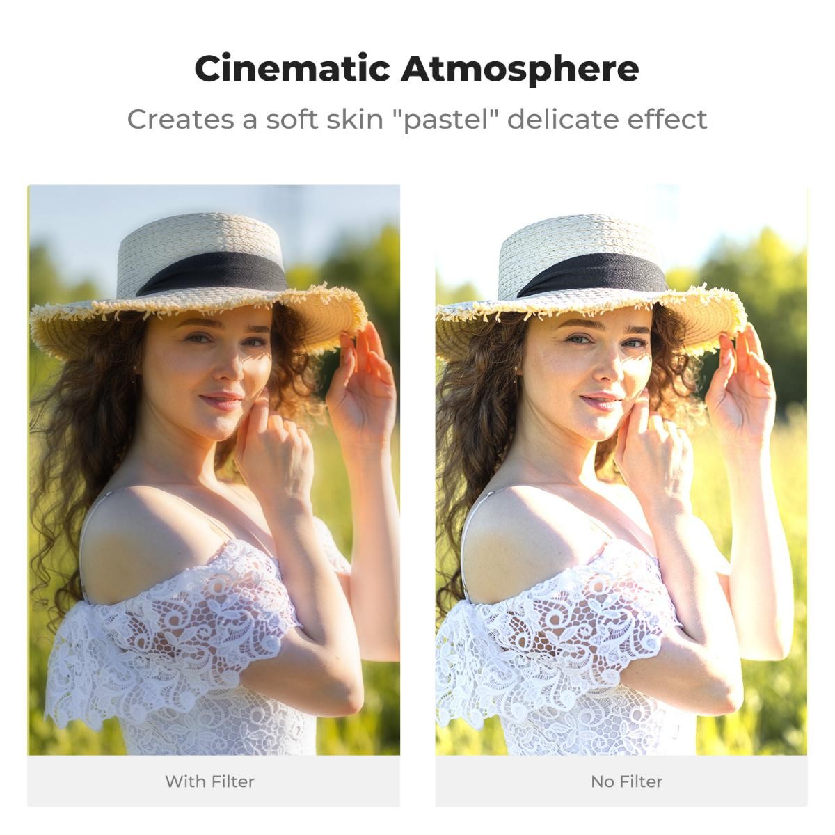 Der K&F Concept 49 mm Adjustable Black Mist 1/4 & Variable ND2–ND400 Filter kombiniert Diffusion und variable Lichtreduzierung in einem einzigen, vielseitigen Werkzeug – ideal für Fotografen und Videografen, die eine gleichmäßige Belichtungssteuerung und eine traumhafte, filmische Weichheit suchen.