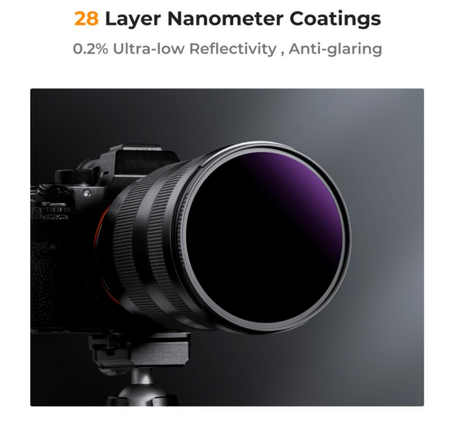 Der K&F 49MM Nano-X Ultra ND1000000 Filter bietet eine Lichtreduzierung von 20 Blendenstufen, ideal für Sonnenfotografie und Langzeitbelichtungen. Er sorgt für farbgetreue und scharfe Ergebnisse und fängt komplizierte Sonnendetails ein. Der aus hochwertigem optischem Glas gefertigte Filter verfügt über eine 28-fache Nanobeschichtung für reduzierte Reflexionen sowie kratzfeste, wasserabweisende, öl- und staubabweisende Eigenschaften. Der gerändelte Filterring sorgt für einen sicheren Halt, während der leichte, ultraschlanke Aluminiumrahmen Vignettierung verhindert. Es ist mit allen 49-mm-Objektiven kompatibel und eignet sich perfekt für die Präzisionsfotografie.
