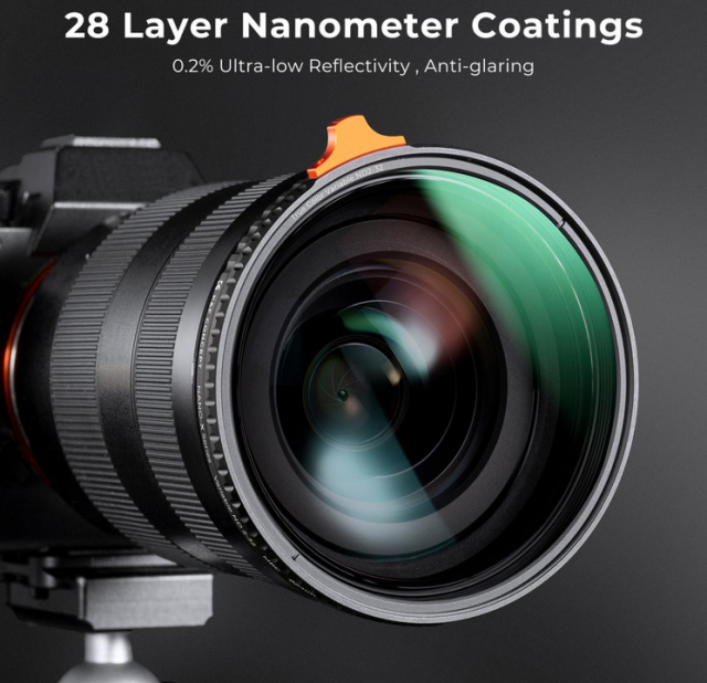 Hochwertiges optisches Glas: Hergestellt aus hochwertigem japanischem optischem Glas mit doppelseitiger 28-Schicht-Nanobeschichtung, ist dieser Filter wasserdicht, ölbeständig, kratzfest, leicht zu reinigen und beschlagfrei für eine langfristige Lagerung.