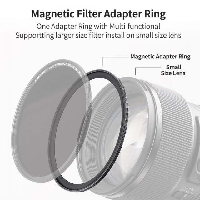 Mit seiner stabilen Ansaugfunktion sorgt der Adapterring dafür, dass magnetische Filter sicher an ihrem Platz bleiben, was einen schnellen und effizienten Filterwechsel ermöglicht. Bitte beachten Sie, dass dieser Adapter ausschließlich für magnetische Filter entwickelt wurde und nicht mit herkömmlichen nicht-magnetischen Filtern verwendet werden kann.