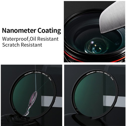 Der K&F Concept 55 mm XU10 Ultra Slim B270 MCUV-Filter ist ein hochwertiger UV-Schutzfilter mit L380-UV-Sperre, 18-lagiger multiresistenter Beschichtung und Nanoresistenztechnologie. Sein ultraschlanker Aluminiumrahmen minimiert Vignettierungen und schützt Ihr Objektiv gleichzeitig vor Kratzern, Wasser und Staub.