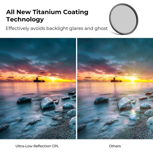 Dieser zirkulare Polarisationsfilter mit sehr geringer Reflexion von K&F Concept eliminiert unerwünschte Reflexionen von nichtmetallischen Oberflächen wie Wasser und Glas und erhöht die Farbsättigung und den Kontrast für beeindruckende Fotos. Nehmen Sie atemberaubende Bilder mit reduzierten Reflexionen und verbesserten Farben auf.