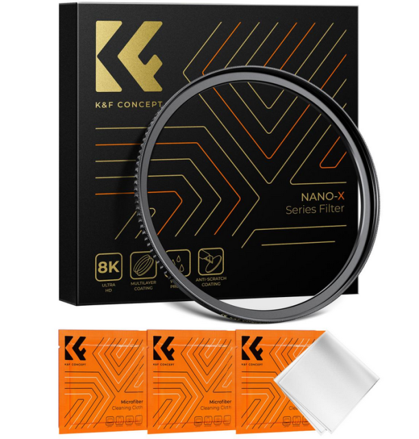- 3 Reinigungstücher:* K&F Concept liefert 3 vakuumverpackte Reinigungstücher mit ihren Step-up-Ringen. Diese Tücher sind sanft, staubfrei und verhindern Sekundärverschmutzung.