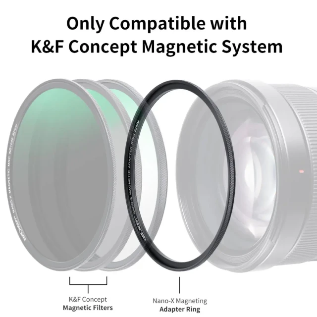 Bitte beachten Sie, dass dieser Adapterring nur mit 82-mm-Magnetfiltern von K&F Concept kompatibel ist und nicht mit nicht-magnetischen Filtern oder Adaptern funktioniert.