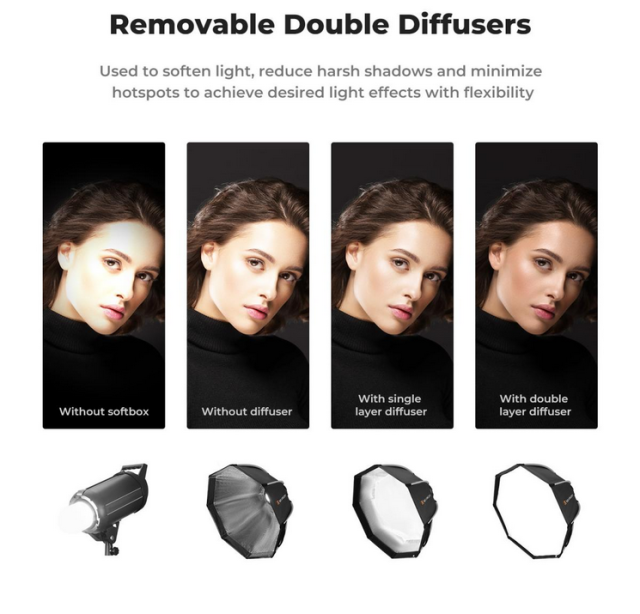 Verbessern Sie Ihre Porträts, Hochzeiten, Modefotografie, Videoaufnahmen, Live-Streaming und Interviews mit dieser achteckigen Softbox (90 cm / 35 Zoll). Sie ist leicht und einfach zu bedienen und bietet eine gleichmäßige, farbgetreue Lichtreflexion.
